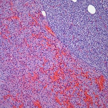 A 36-year-old patient presents with a liver mass, and a biopsy is performed. What is your diagnosis?