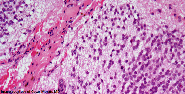 A 46-year-old woman presents with an ovarian mass. After further evaluation, a biopsy is performed. What is your diagnosis?