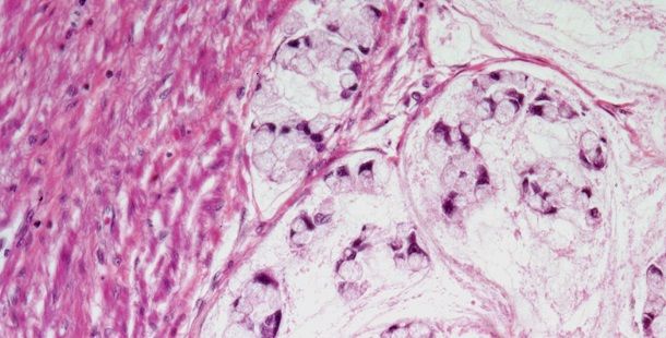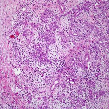 A 45-year-old man presents with gastric pain and is found to have a gastric nodule. After further evaluation, a biopsy is performed. What is your diagnosis?