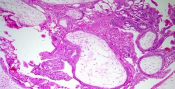 A 17-year-old girl at 13 weeks gestation presents with vaginal bleeding and cramping. After further evaluation, a biopsy is performed. What is your diagnosis?