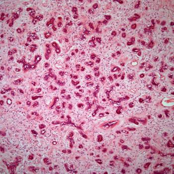 A 38-year-old woman presents with a lesion in the pancreas, and a biopsy is obtained. What is your diagnosis?