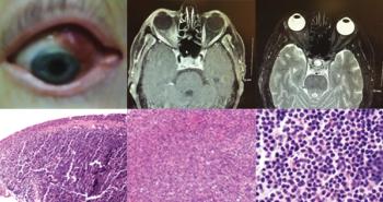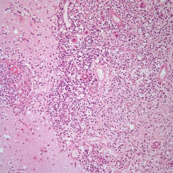 A 38-year-old man presents with a fever and headaches. A brain mass is detected, and a biopsy is obtained. What is your diagnosis?
